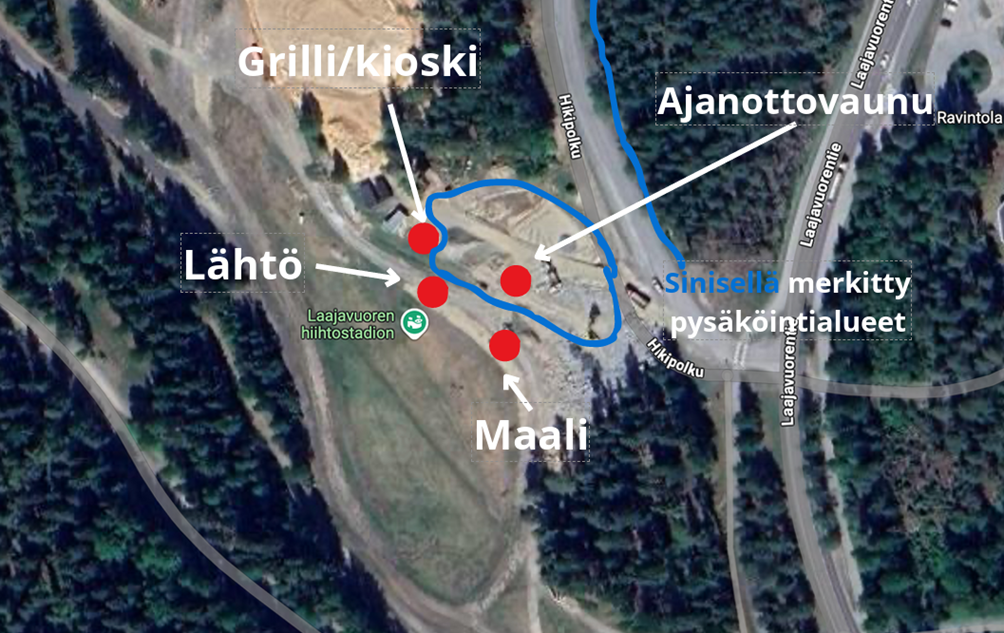Kilpailupaikan osoite: Hikipolku 1, pysäköinnin ohjaus Hikipolun varsi ja Hikipolun P-alue. Kilpailupaikalla ei ole sisätiloja käytettävissä, joten varauduthan kelin mukaisilla varusteilla.